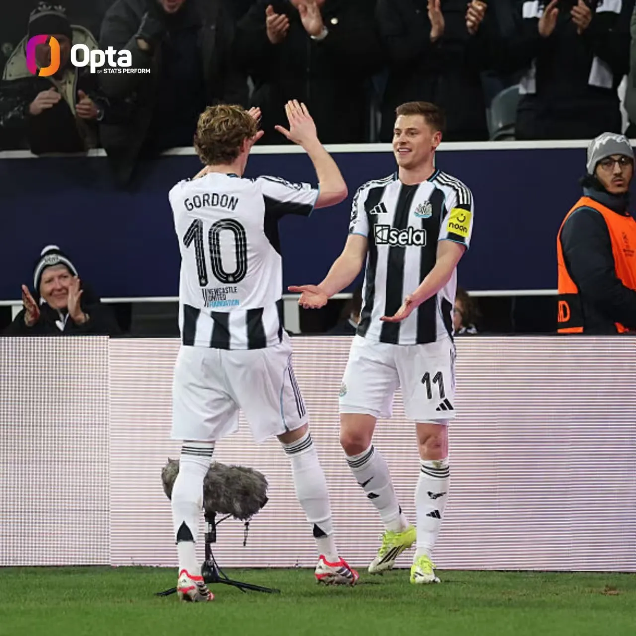 虎扑01月22日讯 纽卡斯尔联的安东尼-戈登(6球)与哈维-巴恩斯(5球)在本赛季欧冠中双双打入5+进球,成为2000-01赛季以来,欧冠历史上第三对达成这一成就的英格兰本土队友组合。
